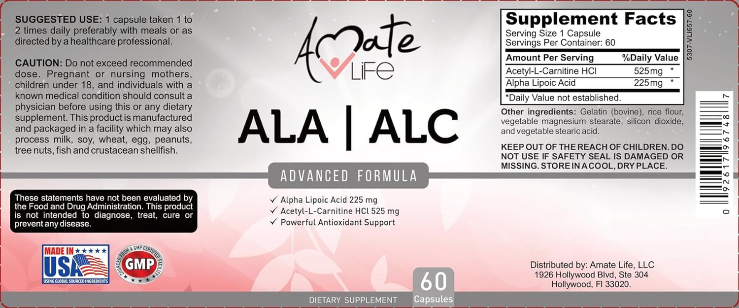 | Primary Supplement Type | Acetyl-L-Carnitine HCL 525mg, Alpha Lipoic Acid 225mg |