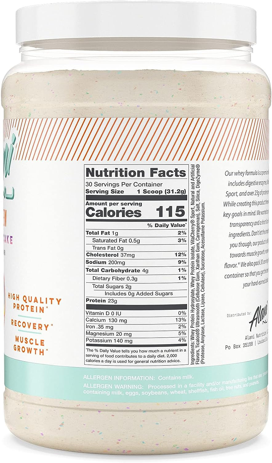 Alani Nu Whey Protein Powder Confetti Cake | 23G Protein with Low Sugar & Digestive Enzymes | Meal Replacement Powder | Low Fat Low Carb Whey Isolate Protein Blend | Low Sugar |30 Servings