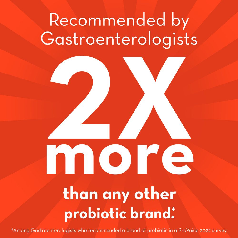 THE PROBIOTIC BRAND DOCTORS RECOMMEND MOST. Recommended by Gastroenterologists two times more than any other probiotic, Align daily probiotic supplement is the #1 doctor and gastroenterologist recommended probiotic brand. Align Extra Strength^ is a daily probiotic supplement that fortifies your gut with 5X the good bacteria^ to help you maintain digestive balance.* Align Extra Strength Probiotic contains the unique strain Bifidobacterium 35624 TM, which was developed by Gastroenterologists and backed by 20+ years of research, and naturally helps soothe occasional abdominal discomfort, gas, and bloating.* Taking one capsule a day helps to maintain your digestive system's natural balance*. Align Extra Strength Probiotic is vegetarian, gluten-free, soy-free and does not require refrigeration.*THESE STATEMENTS HAVE NOT BEEN EVALUATED BY THE FOOD AND DRUG ADMINISTRATION. THIS PRODUCT IS NOT INTENDED TO DIAGNOSE, TREAT, CURE, OR PREVENT ANY DISEASE.Among Doctors and Gastroenterologists who recommended a brand of probiotic in ProVoice 2022 survey^vs. Align Probiotic CapsulesRecommended 1.92x more among doctors who recommended a brand of probiotic in ProVoice 2022.