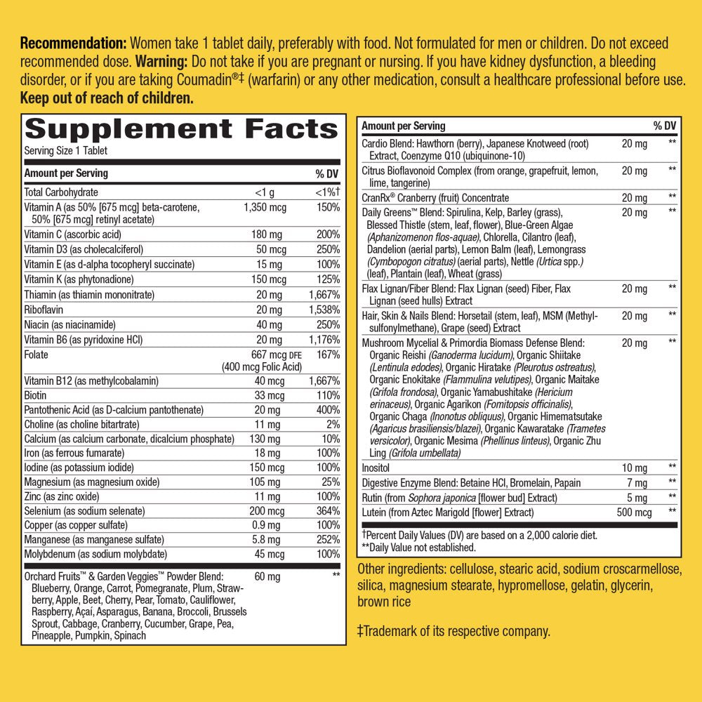 - Women take 1 tablet daily, preferably with food, to support multiple body systems.*