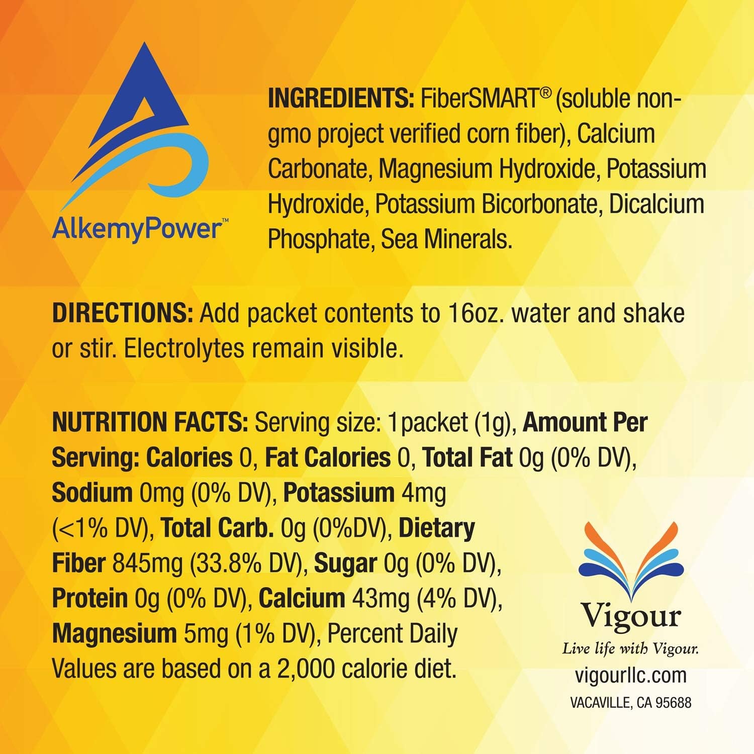 AlkemyPower is an innovative mineral and electrolyte formula clinically proven to increase hydration and replenish electrolytes with 100% natural ingredients. Clinical research confirms that AlkemyPower has the same hydration power as the leading sports recovery drink with a slightly greater recovery of hematocrit and serum potassium without feeling uncomfortably full. The patent pending, no flavor formula offers great water taste. With a ph greater than 8.0, your water becomes alkaline and helps neutralize the acid in your body to fight free-radical damage, combat inflammation, reduce stress, and protect bone health. Our unique formula with FiberSMART, a natural soluble fiber and prebiotic, provides your body additional digestive health benefits. AlkemyPower is vegan, non-gmo, and gluten free with zero sugars, salts, carbs, flavors or calories. Convenient single serving stick packs come 30 to a pouch. Add one stick pack to 16oz. of water and shake. Electrolytes will remain visible. AlkemyPower provides pure and potent ingredients, is backed by human clinical trials and has been presented at some of the most distinguished professional scientific meetings including The American College of Sports Medicine. Using the best science available, AlkemyPower is proven effective and safe.
