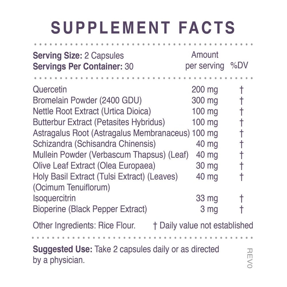 SYNERGISTIC BLEND: Cymbiotika s Allergy Defense features a synergistic blend of antioxidants, bioflavonoids, medicinal herbs, enzymes, and cofactors.,POWERFUL ANTIXODIANT: Formulated with Alpha-Glycosyl Isoquercitrin, which is 3x more bioavailable than Quercetin. Quercetin is an antioxidant bioflavonoid found throughout nature and in many fruits and vegetables. For centuries, Quercetin has been used to support the immune and respiratory systems.,DIRECTIONS: Take 2 capsules daily or as directed by a physician.,PRO-TIP: Double down on immunity defense with this powerful combo. Our Liposomal Elderberry Defense provides the body with essential vitamins and minerals proven to boost the immune system.,INGREDIENTS YOU CAN TRUST: This product contains ZERO chemicals, GMOs, fish, soy, wheat, gluten, corn, dairy, lactose, eggs, yeast, sugar, solvents, alcohols, binders, flavors, additives, preservatives, coloring, fragrance, silicone, and BPA.