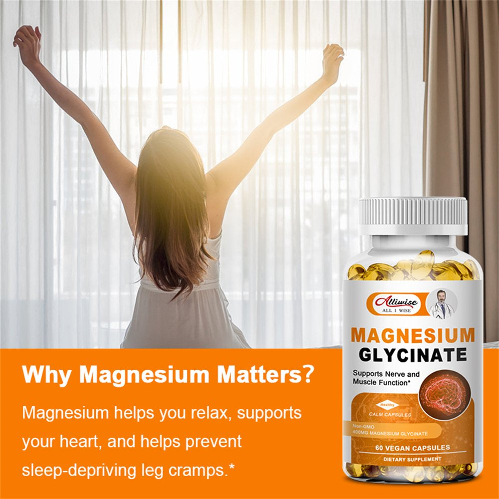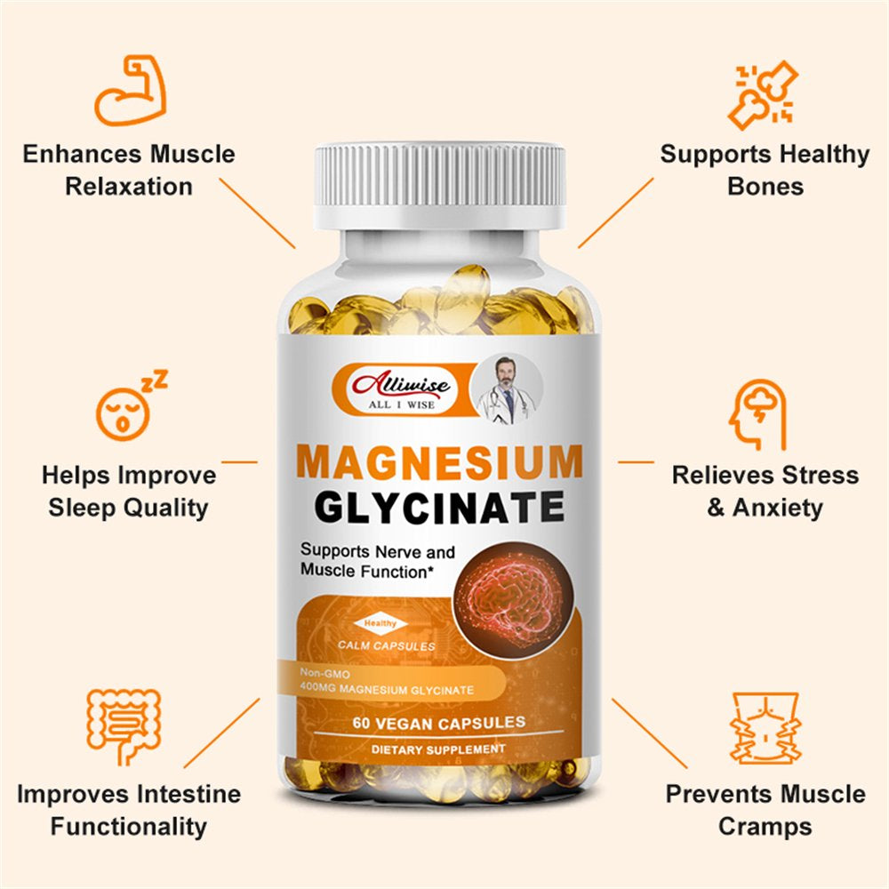 Alliwise Magnesium Glycinate 400Mg Natural Mineral Supplement, Support Sleep, Bone Health, Immunity Support & Heart Health, 120 Veg Capsules - 120 Capsules is backordered and will ship as soon as it is back in stock.