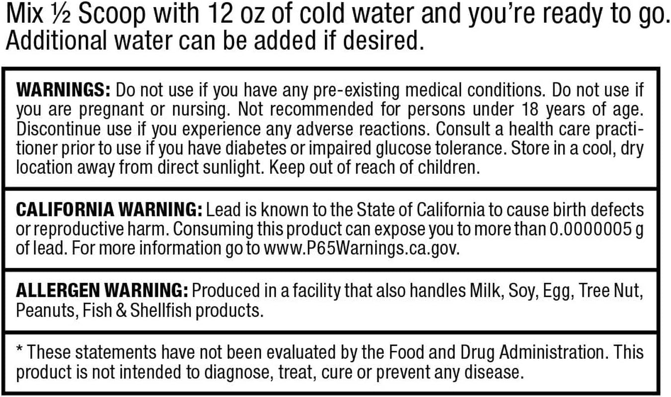 - SUGGESTED USE - Mix half a scoop with 12 oz. of cold water. Additional water can be added if desired.