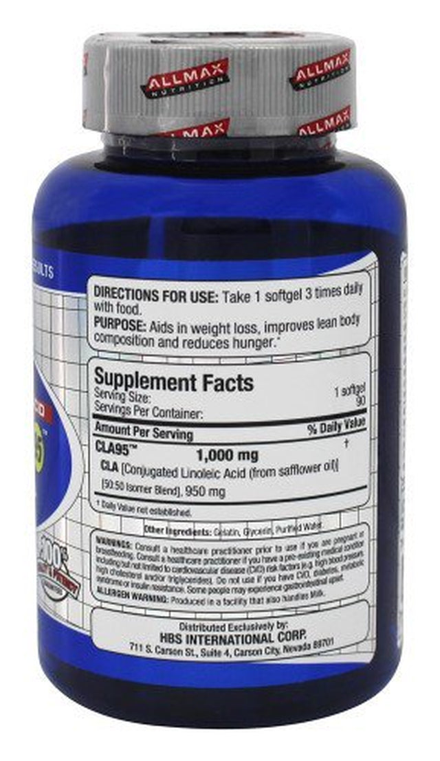 - Allmax CLA 95 Conjugated Lineolic Acid - 90 Softgels