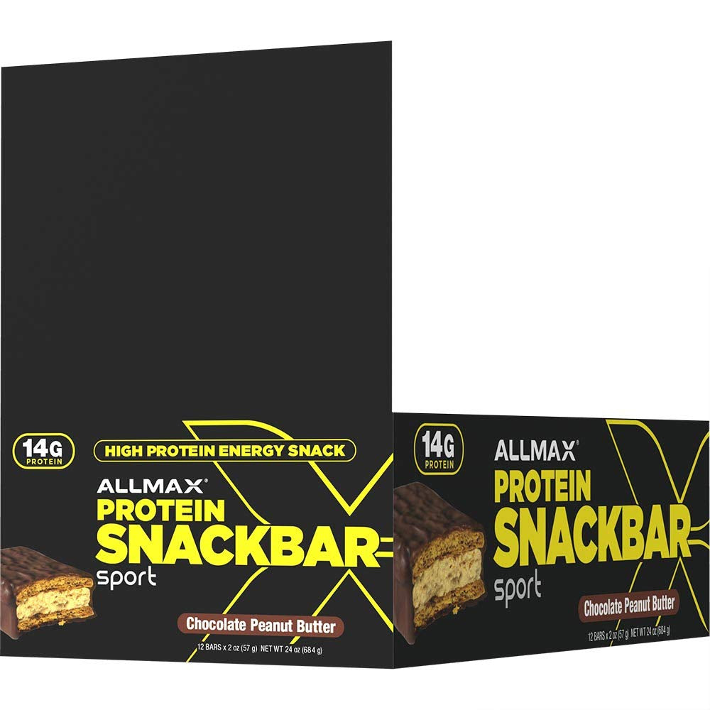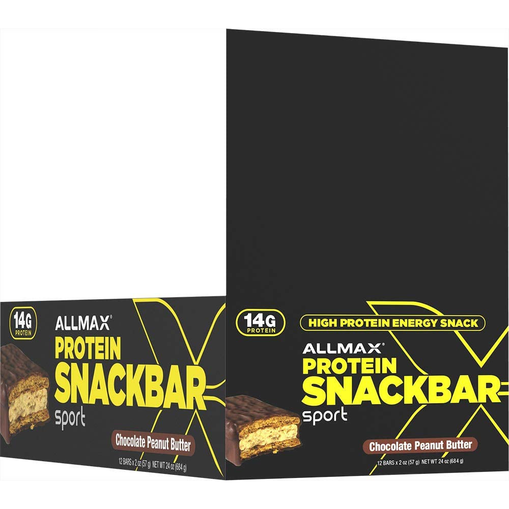 - HIGH-PROTEIN ENERGY SNACKBAR - Sink your teeth into crispy, creamy layers of ALLMAX SPORT PROTEIN SNACKBARS. With 14 g of protein per bar, every delicious bite is made with real food: chocolate, peanut butter, graham crackers, plus whey protein isolate.