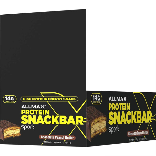 ALLMAX SPORT PROTEIN SNACKBAR, Chocolate Peanut Butter - Pack of 12 - High-Protein Energy Snack - 14 G of Protein per Bar - with Whey Protein Isolate