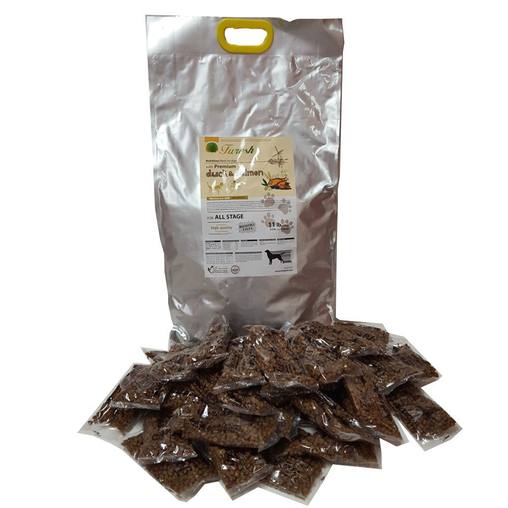 - Contains premium Duck and Salmon meat along with essential vitamins, minerals, fatty acids, amino acids, Ginseng Root, and other superfoods that promotes skin and coat health, builds strong joints, aids in dental health, boosts immunity, aids in digestion and nutrition absorption, maintains lean and strong muscles, and gives your pets vitality.