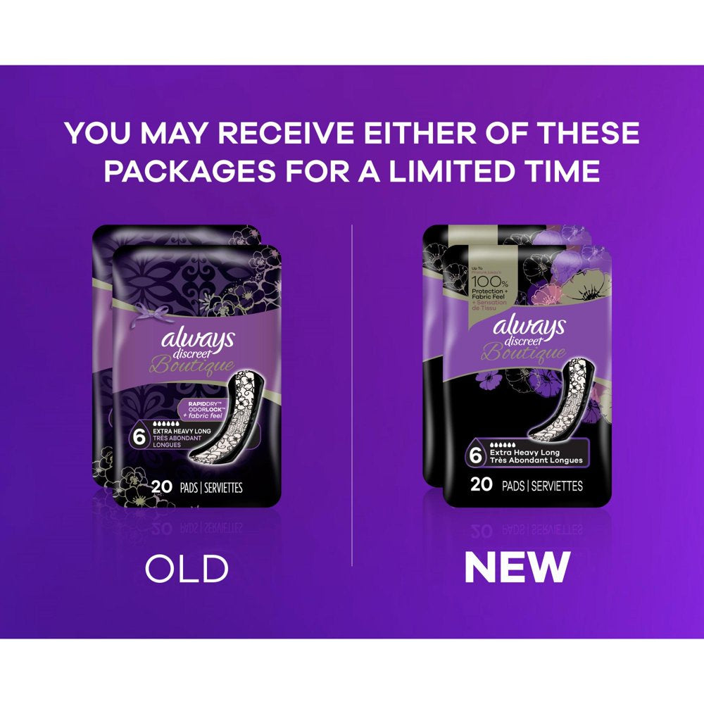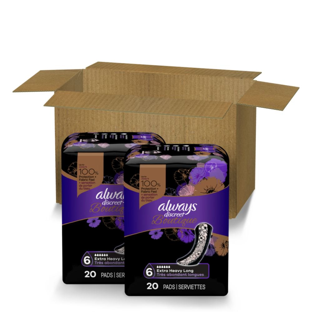 - Always Discreet Boutique Heavy Absorbency Pads are ideal for heavy leaks