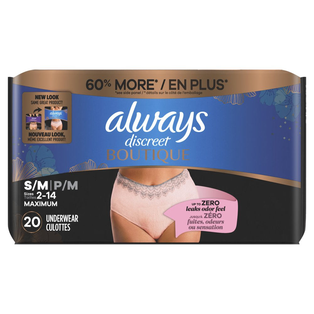 Always Discreet Boutique Incontinence Underwear, Maximum Protection, S/M, Rosy, 20 Ct