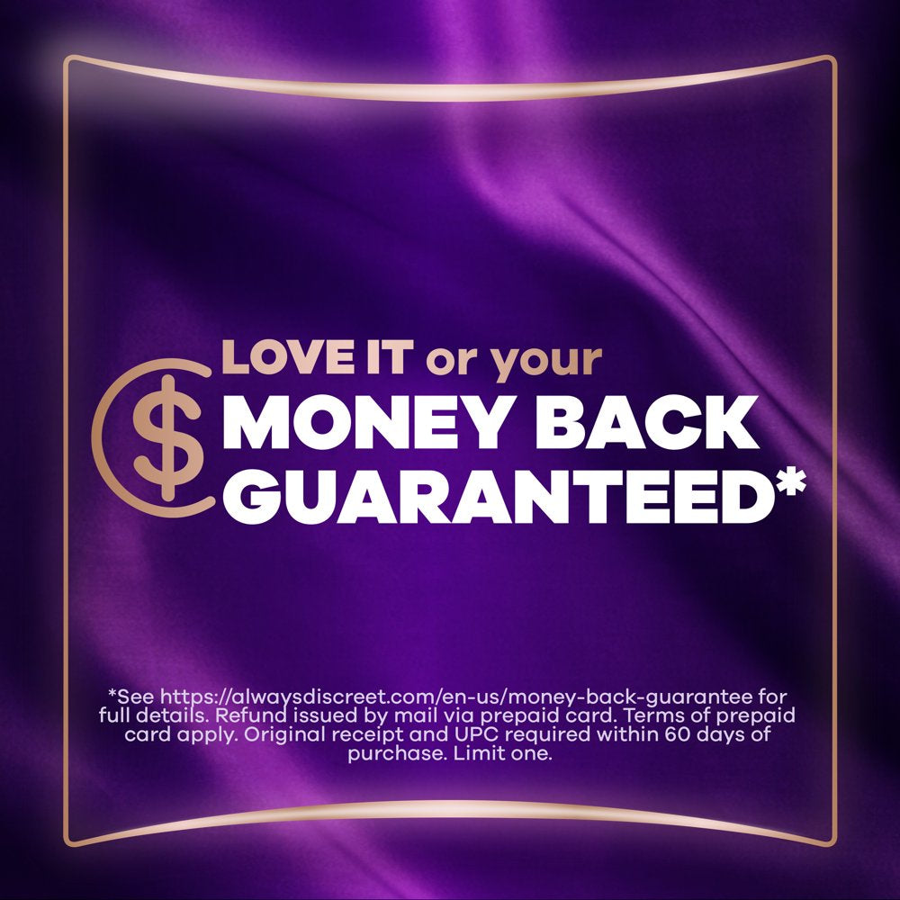 Looking for disposable women's incontinence underwear that gives you maximum protection? Tired of bulky adult diapers that don't look and feel like "real" panties? Try Always Discreet Boutique Incontinence Underwear, which gives our most sophisticated fit along with a soft feel you'll love. The form-fitting design hugs a woman's curves with a soft, silk-like fabric so you can walk with poise and confidence. The ultra-thin core turns liquid to gel and locks away wetness in seconds for maximum protection that leaves you feeling secure for hours. Plus, these panties feature a special side LeakGuard to help stop leaks where they happen most: at the leg. Whether you have an overactive bladder or you're experiencing postpartum urine leaks, the exclusive OdorLock technology neutralizes odors instantly and continuously so you can stay fresh all day long. Get incredible and reliable protection with ladies' disposable Always Discreet incontinence underwear, available in sizes S/M - XL to fit all kinds of curves. Don't let leaks get in the way of your day, simply find your right size with the Always Discreet My Fit chart and get the protection you can depend on. Then, choose between two different yet equally stylish options - Black Low-Rise and Rosy High-Rise - to better personalize your look.