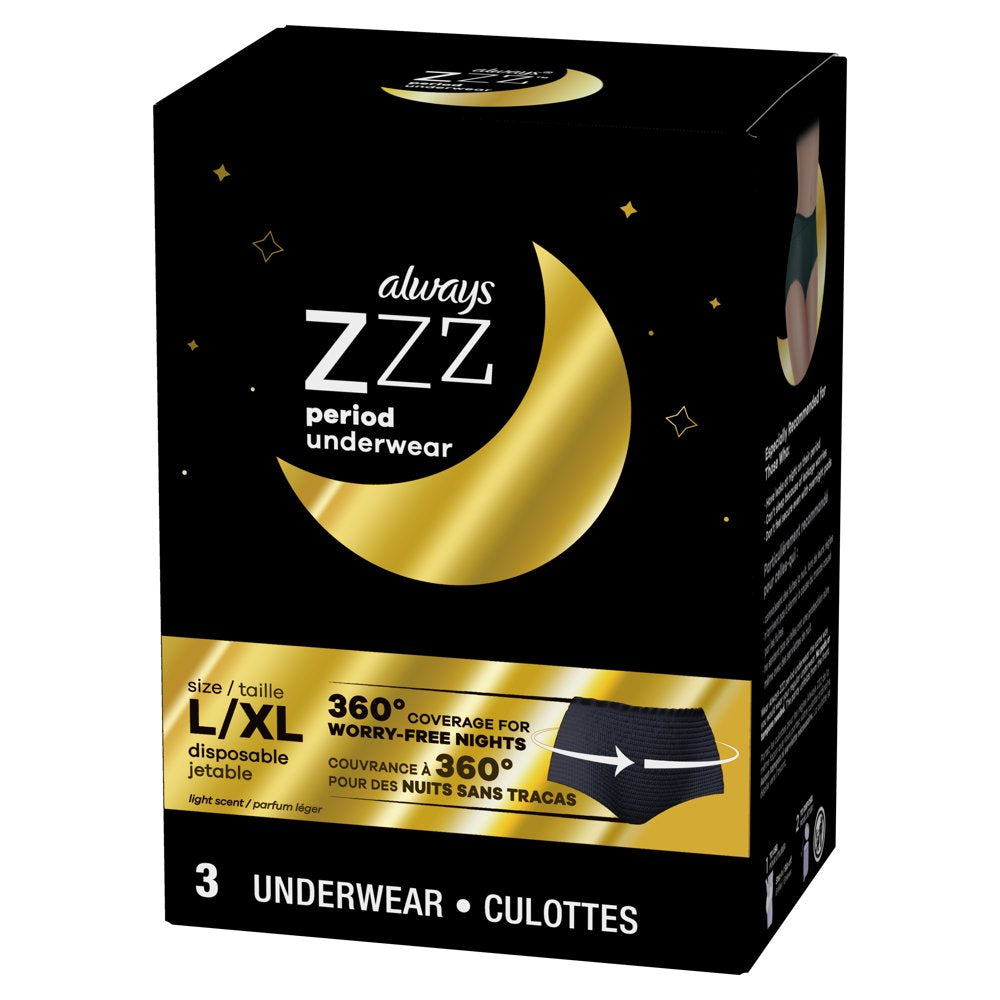 - Leak-free period nights are possible with Always ZZZ Overnight Disposable Period Underwear Size LG