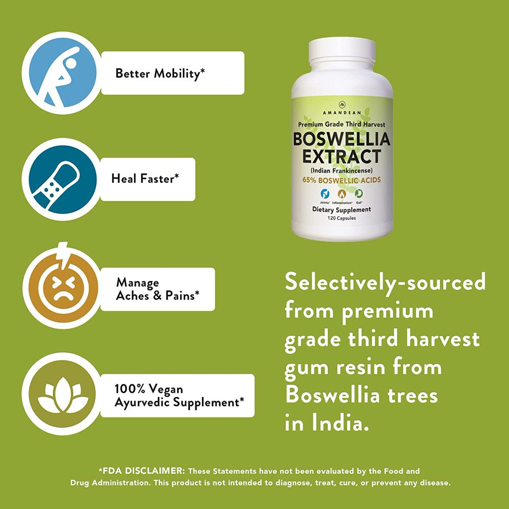 Amandean Boswellia Serrata Extract. 500Mg 120 Veggie Capsules. 65% Boswellic Acids with AKBA. Natural Ayurvedic Supplement (Indian Frankincense). Premium 3Rd Harvest. is backordered and will ship as soon as it is back in stock.