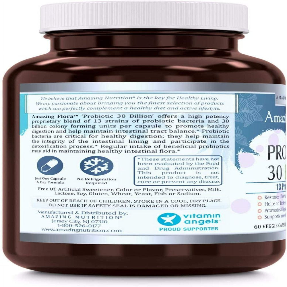 - Amazing Flora Probiotic 13 Strains, 30 Billion 60 Veggie Capsules Supplement
