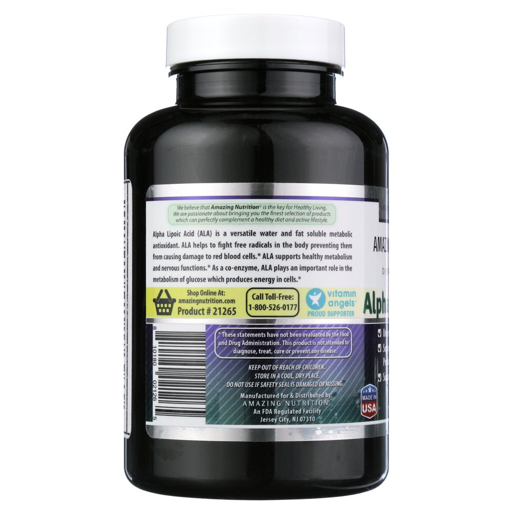 THERAPEUTIC DOSAGE OF ALPHA LIPOIC ACID 600mg Alpha Lipoic Acid Dosage Is The Most Frequently Recommended Dosage By Health Care Professionals. Just One Capsule Of Amazing Formulas Alpha Lipoic Acid Provides 600mg Of ALA. By Taking Two Capsules Daily Makes Increasing The Amount Of Alpha Lipoic Acid In Your Diet Simple! ALA BENEFITS Alpha Lipoic Acid Is A Versatile Water And Fat Soluble Metabolic Antioxidant. ALA Helps To Fight Free Radicals In The Body Preventing Them From Causing Damage To Red Blood Cells. ALA Supports Cardiovascular Health, Healthy Metabolism And Nervous Function. As A Co-Enzyme ALA Plays An Important Role In The Metabolism Of Glucose That Produces Energy In Cells. PERFECT FOR EVERY DIET Amazing Formulas Alpha Lipoic Acid Supplement Is Free Of Sugar, Starch, Milk, Lactose, Soy, Gluten, Wheat & Yeast. Plus, Our Products Are Free Of Artificial Colors, Preservatives, Or Flavors QUALITY All Amazing Formulas Products Are Manufactured In Accordance With Good Manufacturing Practices (GMP), Among The Highest Standards In The World. PURITY & POTENCYWe Offer Best Quality Products For The Best Value. All Our Products Are Third Party Tested. Alpha lipoic acid is an antioxidant produced naturally by the human body. The nutrient is called by a number of names, including r alpha lipoic acid, alpha lipoic ALA, r ALA alpha lipoic acid and ALA. The human body relies on alpha lipoic acid ALA for many important tasks, such as: * Protecting The Organs And Body Tissues From Free Radicals * Assisting With Heart Health * Promoting The Metabolism Of Body Fat * Supporting Nervous System Function * Producing Energy To Power The Body * Supports Body Glucose Tolerance Factor Although the body produces alpha r lipoic acid on its own, some people may require more alpha lipoic acid. Nutrition studies have shown that increasing one's intake of alpha lipoic acid may provide certain health benefits, including: * Assistance With Healthy Weight Management * Improved Athletic Performance * Support Cardiovascular Health If your doctor has recommended that you increase your intake of alpha lipoic acid, Amazing Formulas Alpha Lipoic Acid is the ideal supplement to select. Our alpha lipoic acid capsules provide 600 milligrams of ALA per single capsule serving, greatly simplifying supplementation by providing a dose frequently recommended by doctors. Amazing Formulas Alpha Lipoic Acid contains no unnecessary fillers, preservatives, artificial flavors, artificial sweeteners or synthetic colors. Our supplement is also free of sugar, gluten, soy, yeast, wheat, milk, lactose, starch and sodium, so it's ideal for those who watch what they eat to maintain healthy weight, follow a heart healthy diet and allergy-friendly diets. Increase your intake of alpha lipoic acid with Amazing Formulas Alpha Lipoic Acid capsules!