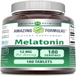 Amazing Formulas Melatonin Supplement | Unflavored | 12 Mg Per Serving | 180 Tablets | Non-GMO | Gluten-Free | Made in USA