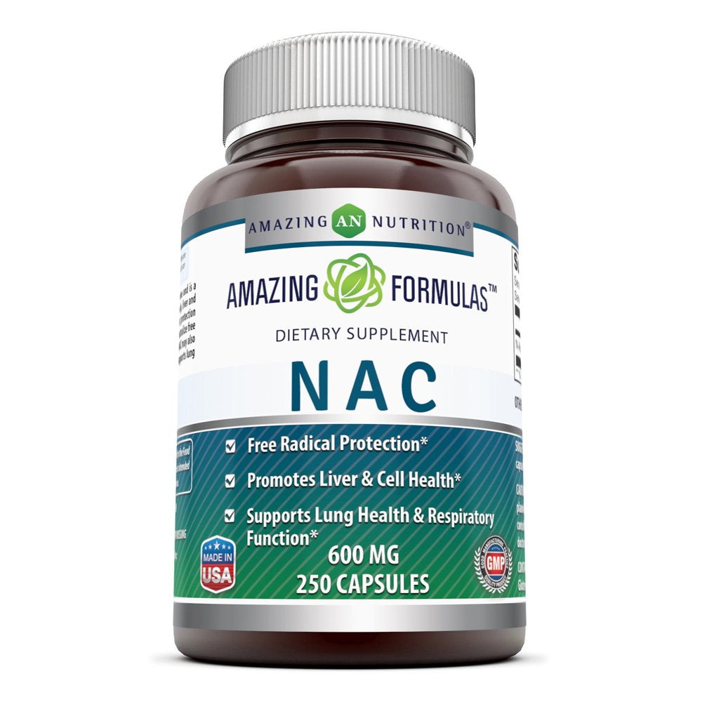 Amazing Formulas NAC (N-Acetyl Cysteine) - 600mg 250 Capsules- Antioxidant Support- Promotes Heart, Liver & Lung Function * N-Acetyl Cysteine (NAC) comes from the amino acid L-cysteine and precursor to the antioxidant glutathione. NAC provides the body, the liver and all cells with increased glutathione and antioxidant protection they need to better perform their functions. * NAC may have numerous health benefits such as: * Supports Cardiovascular System * Supports Neurological Function * Supports the Immune System * Helps with Detoxification Function * Supports Stomach, Intestinal and Kidney Health * Promotes Athletic Performance * Supports Healthy Aging Achieve your health and wellness goals with Amazing Formulas NAC dietary supplements
