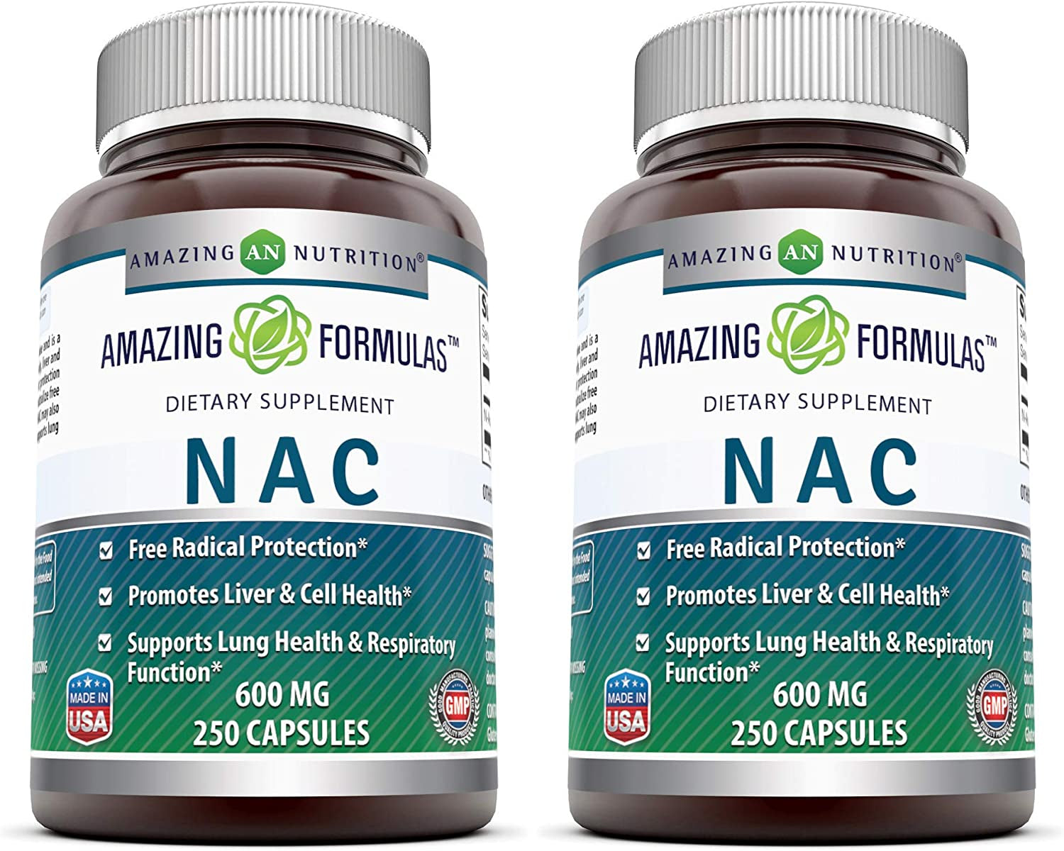 Amazing Formulas NAC (N-Acetyl Cysteine) - 600Mg Capsules- Antioxidant Support- Promotes Heart, Kidney, Liver & Respiratory Function * (250 Count (2 Pack))