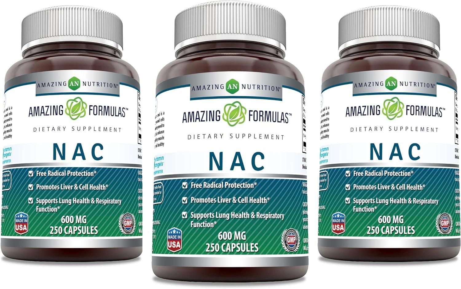 Amazing Formulas NAC (N-Acetyl Cysteine) - 600Mg Capsules- Antioxidant Support- Promotes Heart, Kidney, Liver & Respiratory Function * (250 Count (3 Pack))