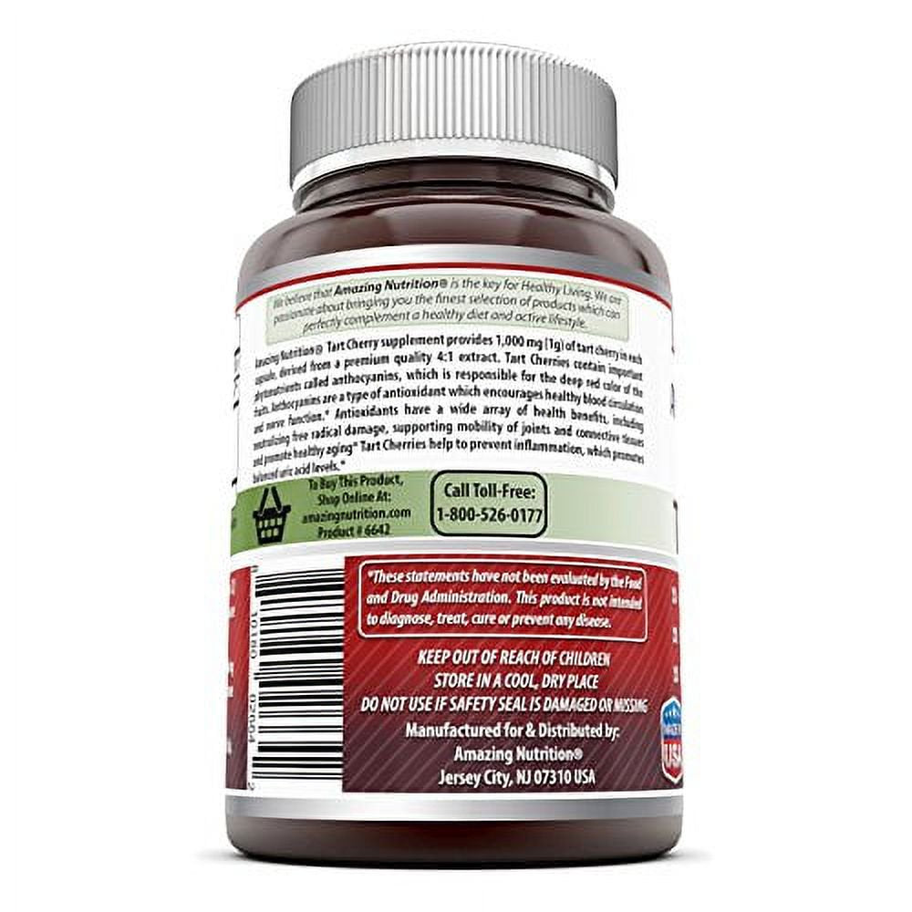 Amazing Formulas Tart Cherry Extract 1000 Mg Capsules - (Non-GMO, Gluten Free) - Antioxidant Support - Promotes Joint Health & a Proper Uric Acid Level Balance (120 Count)