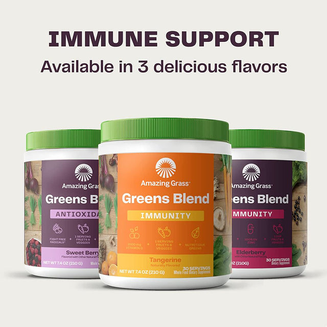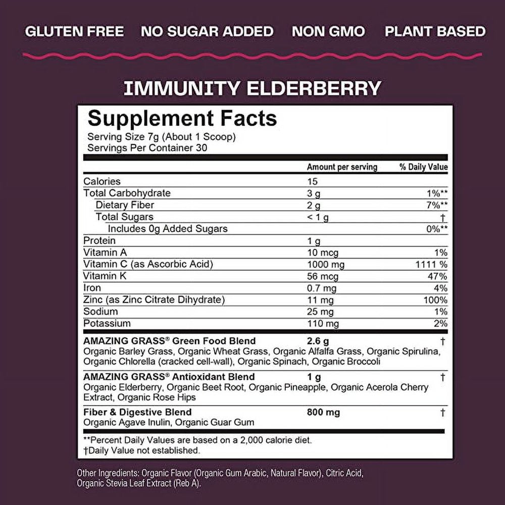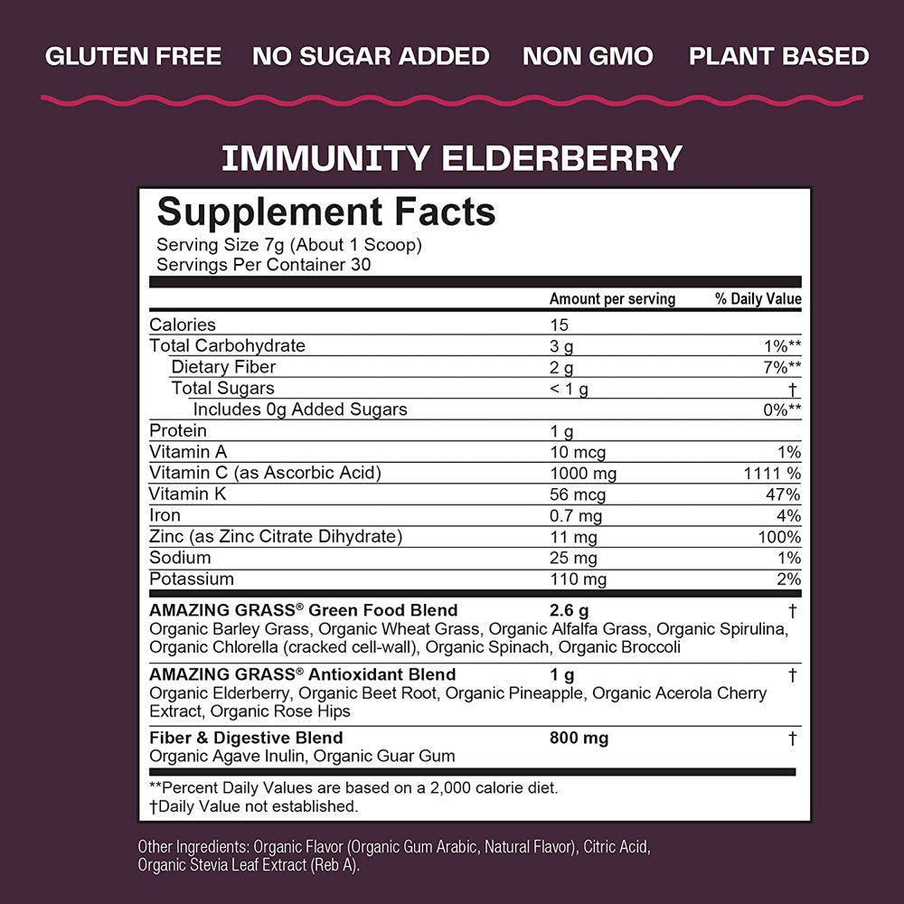 - Amazing Grass, Greens Blend Immunity Powder, Elderberry, 7.4 oz, 30 Servings