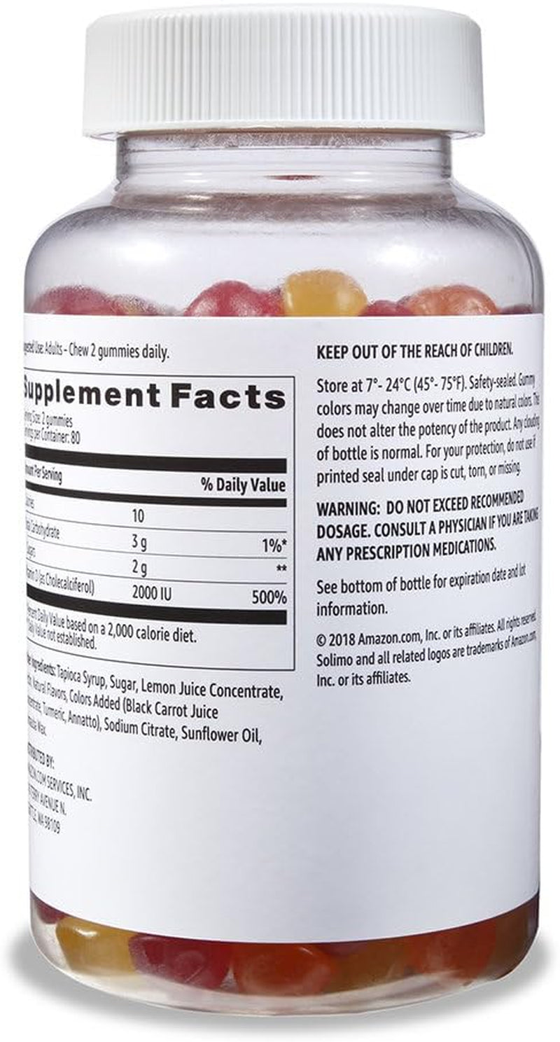 Amazon Brand - Solimo Vitamin D3 2000 IU, 160 Gummies (2 Gummies per Serving)