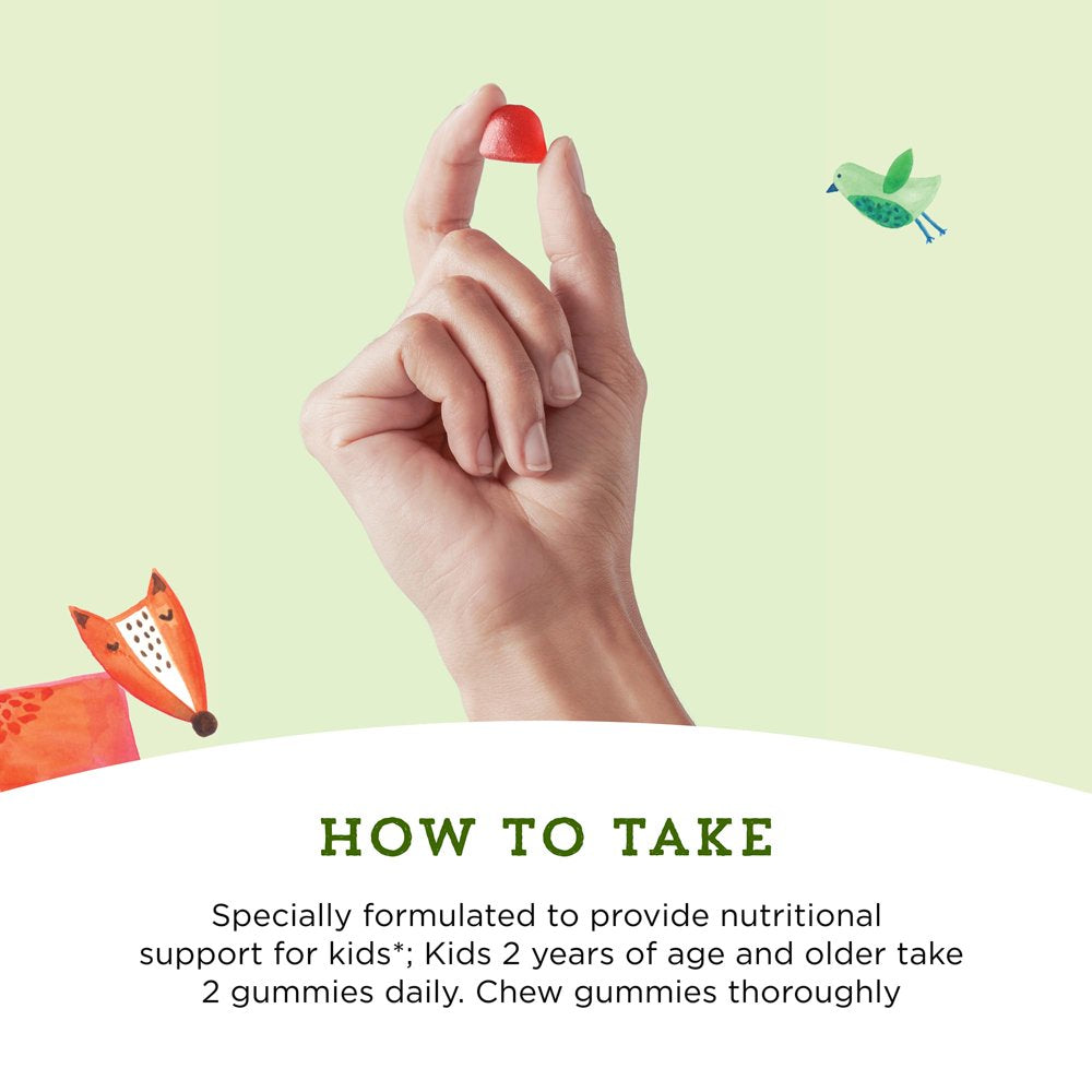 - Kids 2 years of age and older take 2 gummies daily. Chew gummies thoroughly