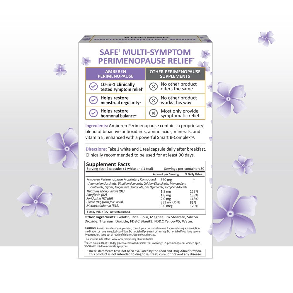 Amberen Multi-Symptom Perimenopause Relief Supplements for Women, Hot Flash & Night Sweats Relief - 60Ct