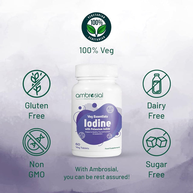 Ambrosial Iodine 5000mcg with 7500 mcg Potassium Iodide| High Strength Iodine Tablets | Natural Source of Iodine from Potassium Iodide Tablets (Pack of 1-60 Tablets)