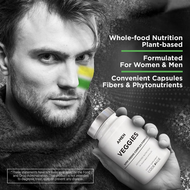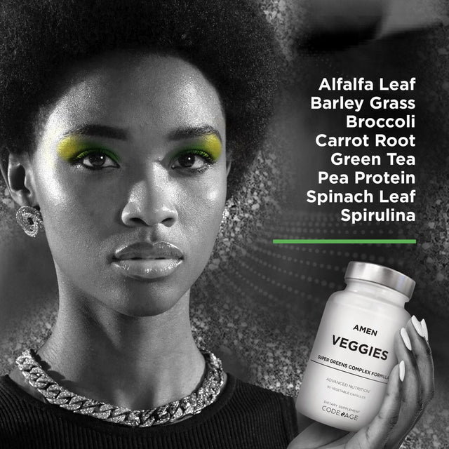 - Raw Vegetable Greens Supplement: Amen Veggies daily greens vitamins capsule formula offers a selection of dark green raw vegetables from spinach leaf, pea protein, broccoli, green tea leaf, spirulina, alfalfa leaf, barley grass, and carrot root powder all-in-one.