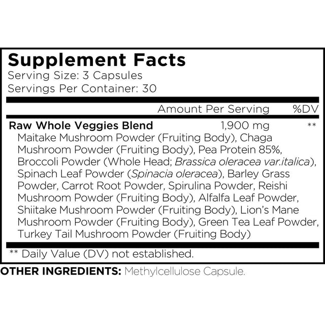 - Mushroom Immune Complex Formula: Sourced from raw food extracts, this Amen vegetables whole food supplement formula combines Maitake and Chaga mushroom powder with Reishi, Lion's Mane, and Turkey Tail mushroom extracts.