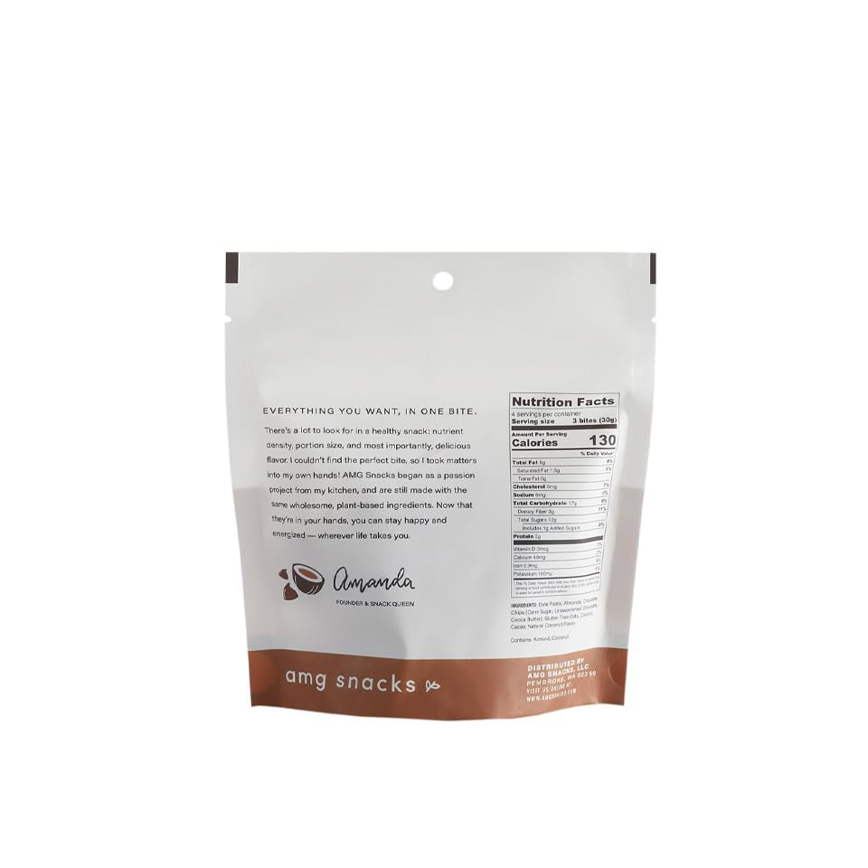AMG Snacks' Chocolate Coconut Energy bites are fantastic on-the-go bites that give a burst of natural energy by being packed full of healthy fats, fiber, and protein. Made with a short list of high-quality ingredients, these are the ideal healthy on the go snack, perfectly portioned and textured for everyone to enjoy.