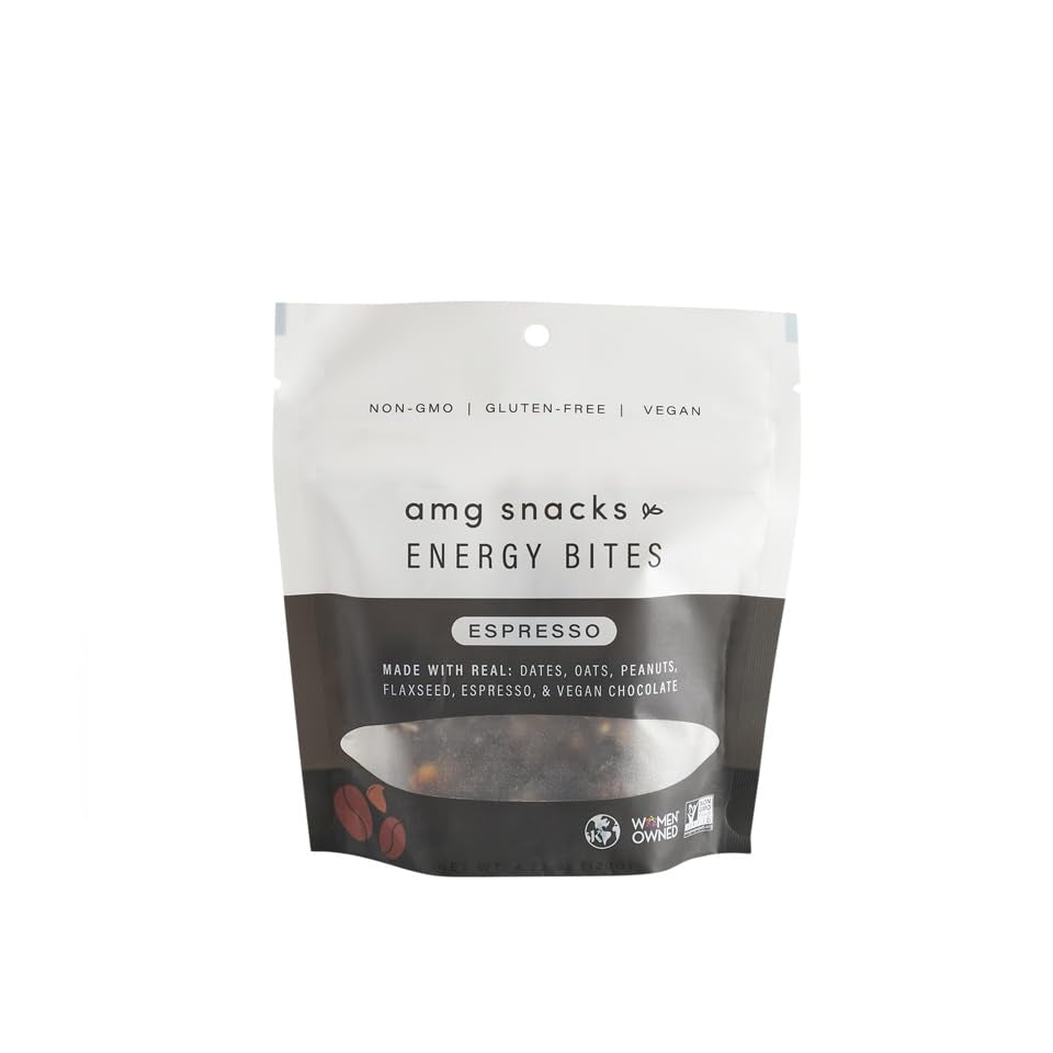 AMG Snacks' Espresso Energy Bites are fantastic on-the-go bites that give a burst of natural energy by being packed full of healthy fats, fiber, and protein. Made with a short list of high-quality ingredients, these are the ideal healthy on the go snack, perfectly portioned and textured for everyone to enjoy.