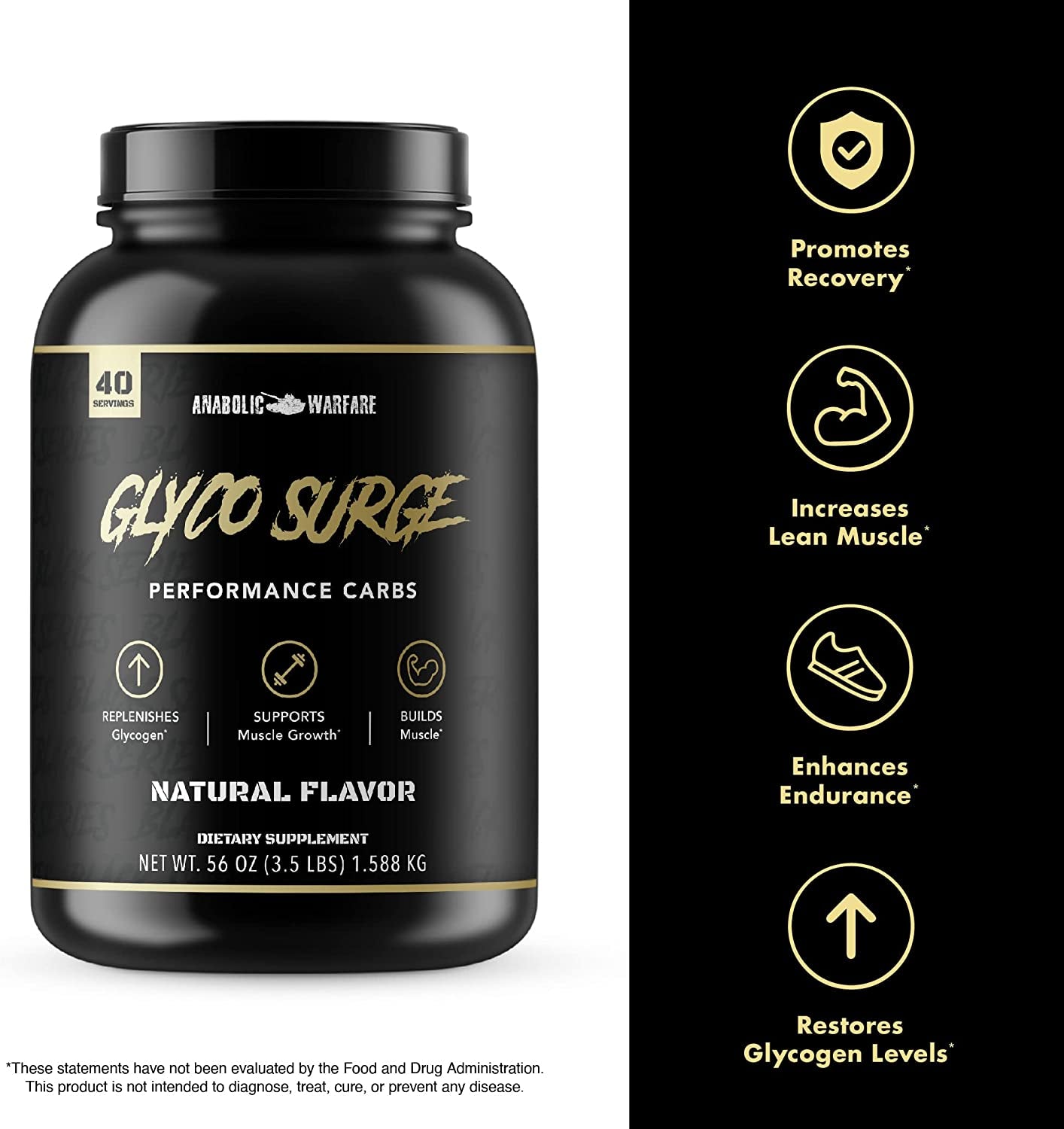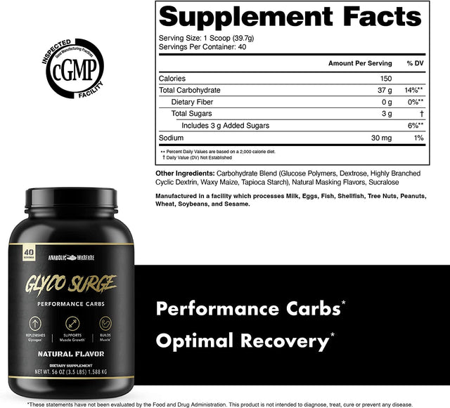 Anabolic Warfare Glyco Surge Glycogen Supplement Performance Carbs to Help Lean Muscle Growth, Post Workout Recovery and Endurance* (Natural - 40 Servings)