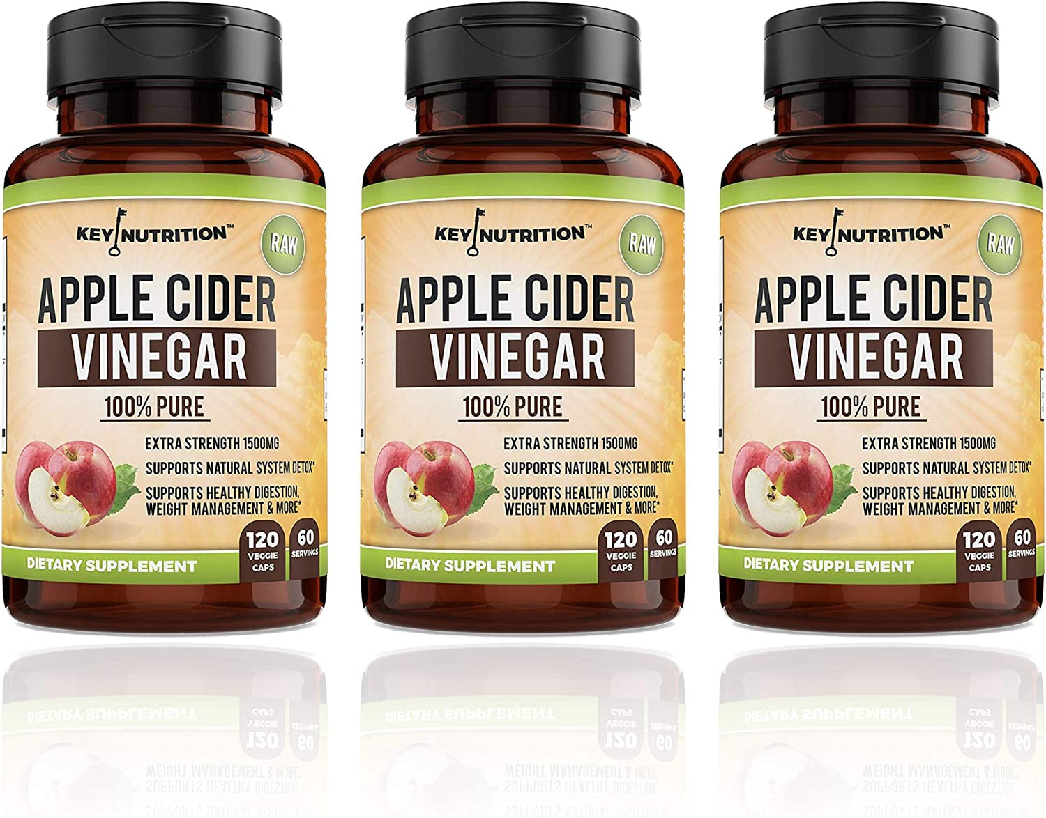Key Nutrition's Apple Cider Vinegar capsules are made from organic apples and include the Mother. This ACV is 100% pure, raw, all-natural.