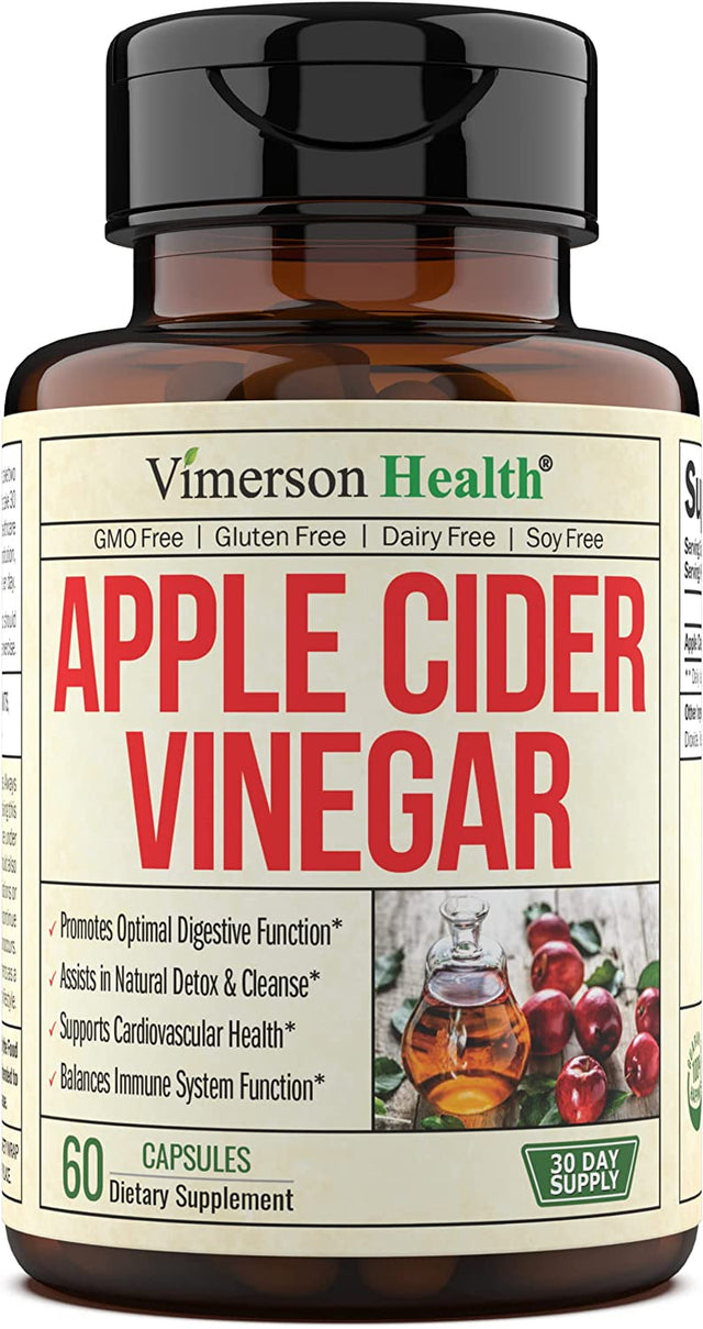 Our Apple Cider Vinegar is and free of GMOs, gluten, dairy, and soy. All Vimerson Health products contain no hormones and no preservatives. Our natural Apple Cider Vinegar supplement is also free of sugar, and starch.