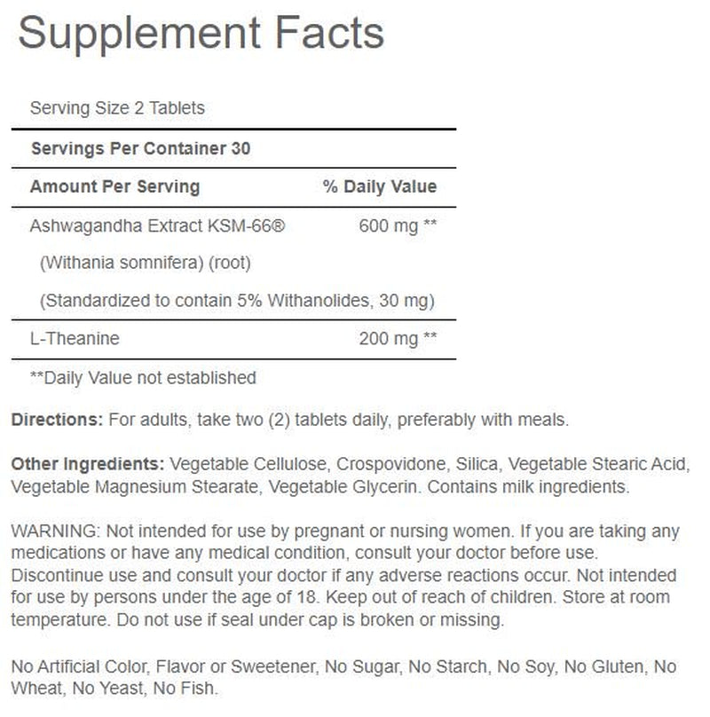 - Contains Ashwagandha Extract KSM-66® 600 mg & L-Theanine 200 mg per serving.