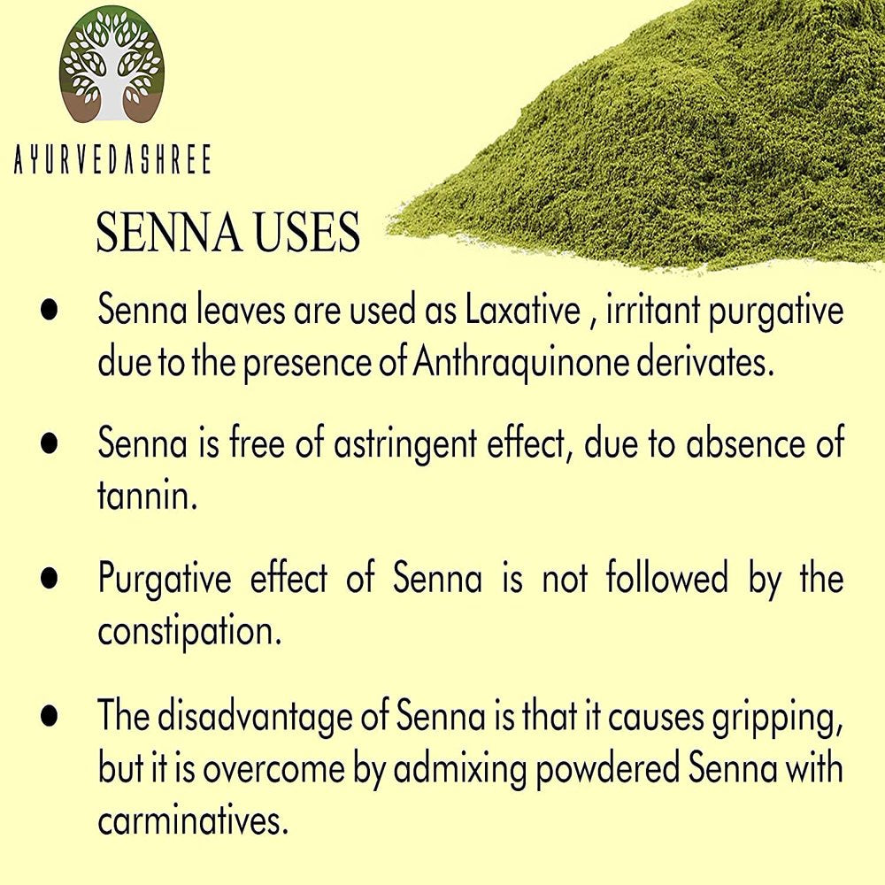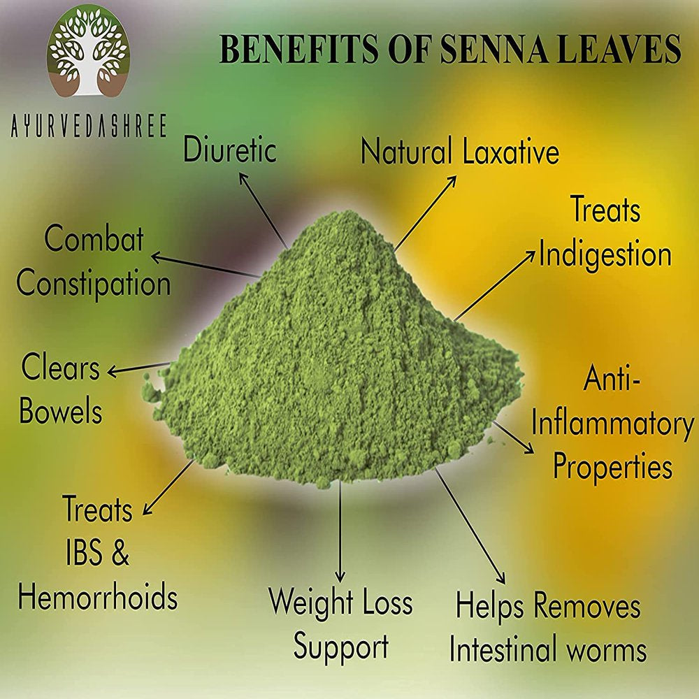 AYURVEDASHREE : Our aim to provide quality products always. We source our raw material from the most natural place of India. Natural with no added chemicals, heavy metals or any other addition which is harmful for anyone in any manner. Our products are made under GMP certified manufacturing. All our products are NON GMO and gluten free. Senna Leaf powder helps smooth bowel/gut movement, flushing out unwanted food. Senna Powder works as a natural laxative.
