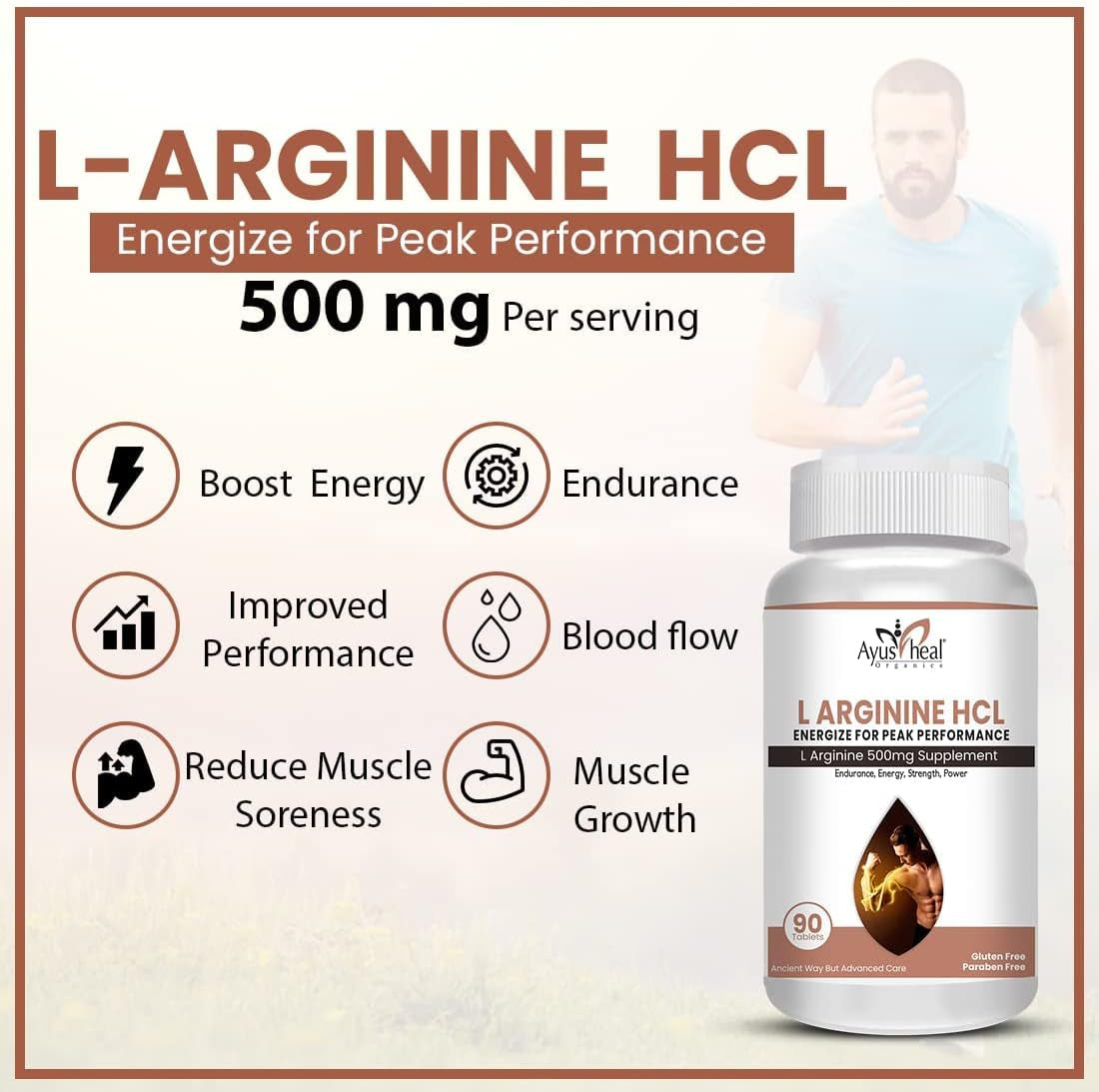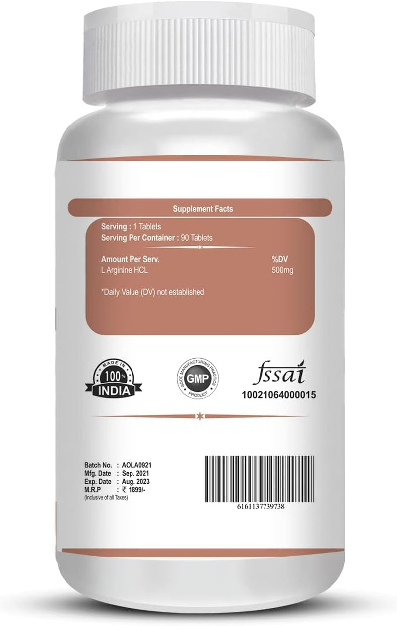 Ayusheal L Arginine 500Mg Supplement per Serving – 90 Veg Tablets