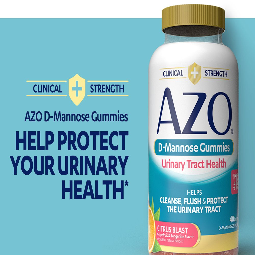 - TRUSTED BRAND - AZO® IS THE #1 SELLING BRAND FOR URINARY HEALTH** – AZO® D-Mannose Gummy packs a clinical strength amount of D-Mannose in tasty gummy form!