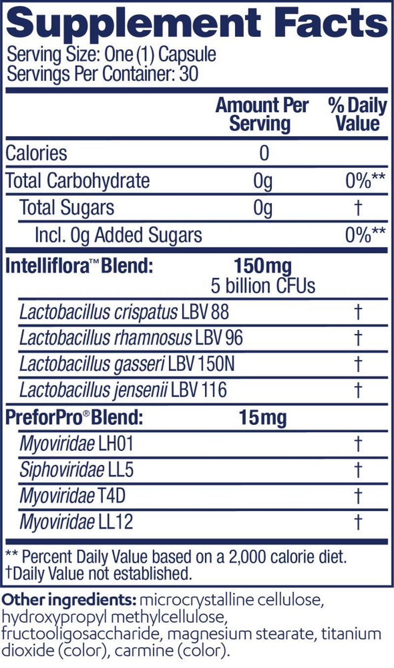 - Intelliflora™ is a clinically proven probiotic that restores the balance of good bacteria and yeast to support a healthy vagina.* This once daily oral capsule helps maintain your natural defenses to support your feminine wellness and a healthy you.*