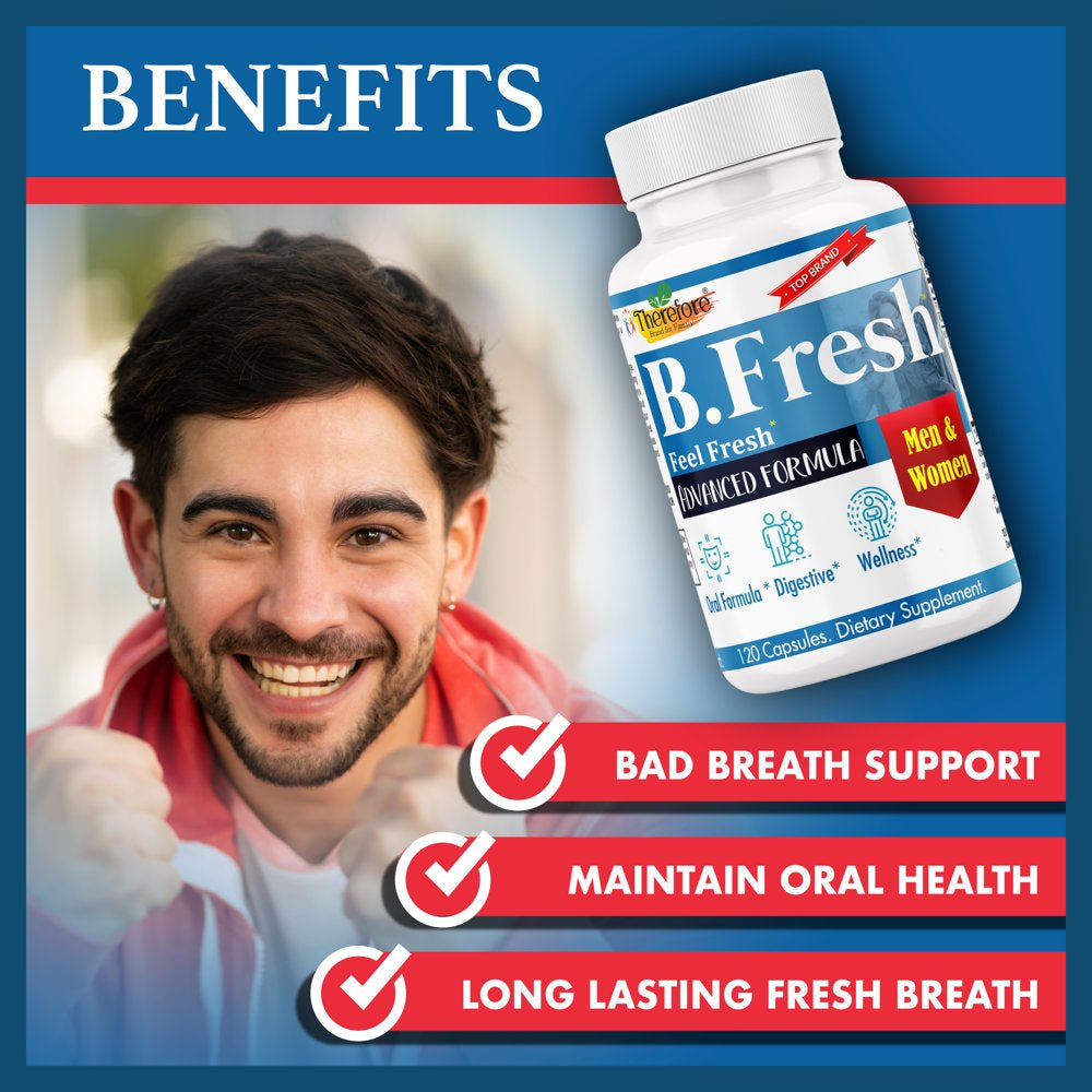 B. Fresh supports your oral health, like bad breath, many oral odor problems have their roots in undesirable bacteria building up in your oral cavity. By introducing good bacteria in the mouth through our B. Fresh dental probiotic, the amount of harmful bacteria is significantly reduced and good bacteria restored, which supports the oral health. Our proprietary oral care formula has an optimal balance of CFU count for each strain to help ensure enough good bacteria survive. Our dental probiotic replenishes the good bacteria in your mouth to support fresh breath. Our fresh breath probiotics is formulated and Bottled in the USA following strict cGMP guidelines; third party certified for purity and quality. Sugar free, chemical-free & natural flavored. Non-GMO, Vegetarian, No Gluten, No Artificial Colors or Flavors. Oral probiotics breath freshener dental probiotics capsule formula offers multiple benefits for fresh breath that lasts all day! Long lasting breath freshener for men and women. Oral hygiene can be a good bad breath remedy! This chewable dental probiotics for breath freshener supplements will keep you smelling fresh and feeling confident.