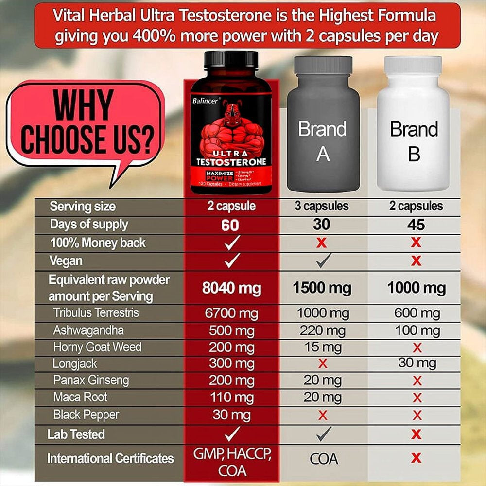 Balincer Men'S Testosterone Booster - Increase Energy, Endurance, Reduce Fatigue, Dietary Supplement Capsules