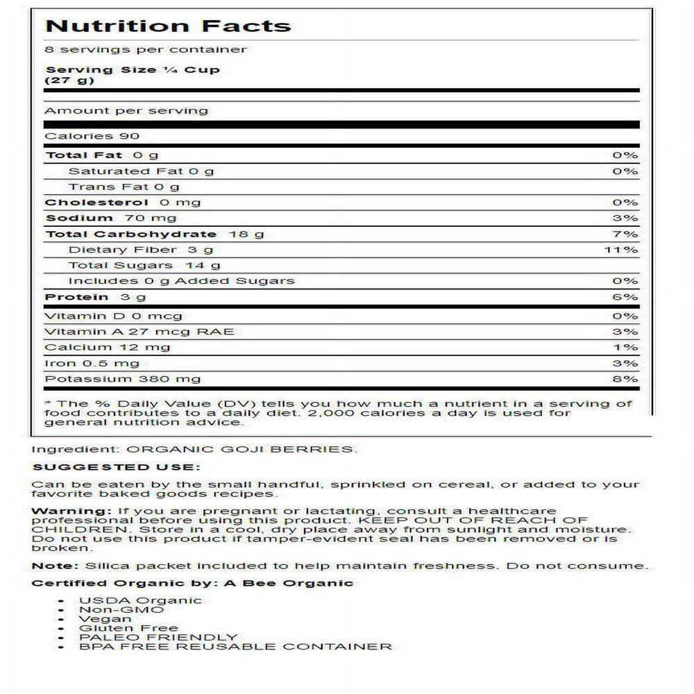 BAREORGANICS Goji Berries (Organic - Sun Dried) (8Oz) 227G