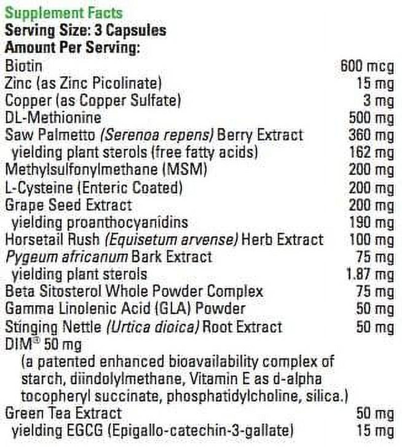 MSM, L-Cysteine, and DL-Methionine are sources of sulfur. Sulfur has been known to support hair growth and also keep skin soft, supple and smooth. They also support the quality and health of the hair and efficient blood supply to the scalp.
