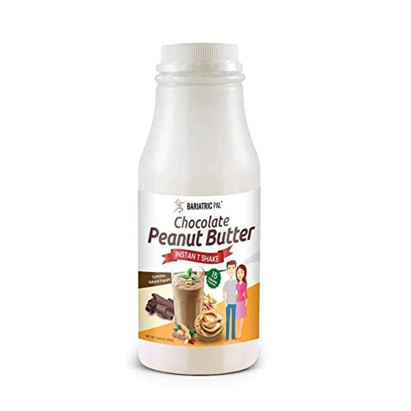 How can you get the tastes of rich chocolate and creamy peanut butter at the same time, while getting the protein you need without the excess calories and sugar that can expand your waistline? Try BariatricPal Ready To Shake Instant Protein Drink – Chocolate Peanut Butter. You can taste that it is made with real cocoa powder and peanuts, but you would never guess that it is healthy. Each serving has 15 grams of protein and only 80 calories. Though it tastes delicious, it has only 3 grams of carbohydrates per serving. It is as convenient as possible. All you have to do is add water, milk, or another favorite beverage to the bottle's fill line, then mix well and enjoy your satisfying meal or snack. BariatricPal Ready To Shake Instant Protein Drinks are there for you whenever you need protein quickly and without fuss. They are shelf-stable, so you can store them wherever you may need them, such as in the car, at home, and in your gym bag. Whenever you need it, you can have a dose of protein to satisfy hunger. Suitable for the Pre Op and Post Op Liquid Diets (pureed recommended), Solid Foods, Weight Loss, and Maintenance diets. Also suitable for gastric sleeve, gastric bypass, duodenal switch and gastric band patients A great dessert, snack, or breakfast 6 x BariatricPal Ready To Shake Instant 15g Protein Drink - Chocolate Peanut Butter per pack