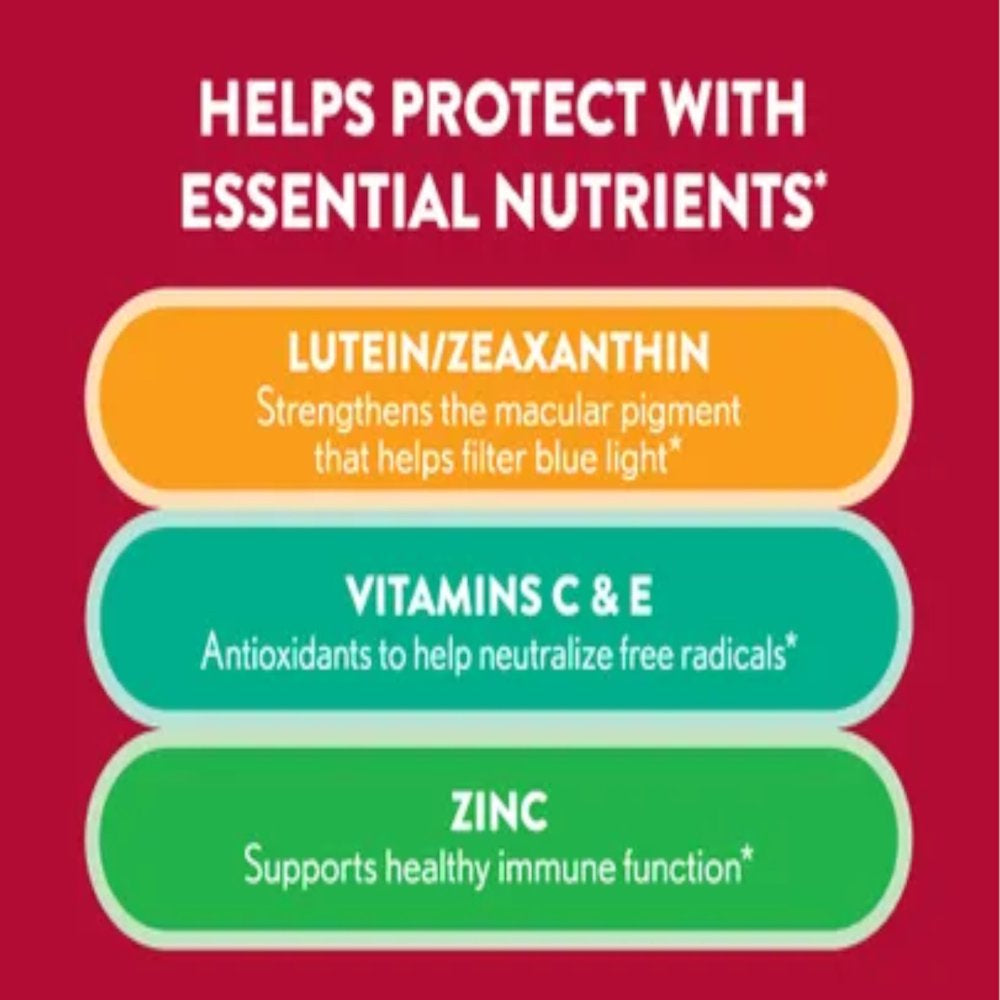OCUVITE EYE HEALTH GUMMIES: These gummy vitamins are carefully formulated to support your eye health, while also having a great tasting fruit flavor. These eye vitamins have Lutein and Zeaxanthin, as well as Vitamin C, Vitamin E, and Zinc. OCUVITE EYE VITAMINS: Ocuvite eye vitamins focus on one thing - supporting your eye health. With gummies, chewables, formulas with the benefits of a daily multivitamin and eye vitamins for adults over 50, Ocuvite supports your eyes at all ages of adulthood. EYE VITAMINS FOR HEALTHY EYES: Bausch and Lomb carries a full line ocular supplements with vitamins, minerals and nutrients that promote eye health, including Ocuvite eye vitamins for general eye health and PreserVision for age-related eye health concerns. BAUSCH and LOMB EYE CARE EXPERTS: In 1853, John Jacob Bausch opened an optical good store in Rochester, New York. Since then, Bausch and Lomb has continued to focus on innovation and quality in eye care products, from contact lenses to lubricant eye drops. BAUSCH and LOMB EYE SUPPLEMENTS: Eye health is more than good vision and at Bausch and Lomb, we're focused on all aspects of healthy eyes. Try our eye health vitamins and supplements if you've used supplements from Smarty Pants, iCaps, Trunature, or Viteyes. During the summer months products may arrive warm but Amazon stores and ships products in accordance with manufacturers' recommendations, when provided.