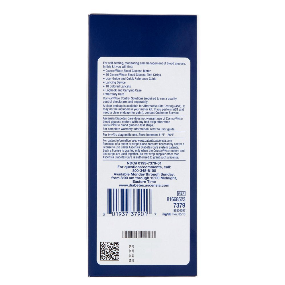 This kit includes the following: -Contour Next Blood Glucose Meter -User Guide and Quick Reference Guide -Bayer's Microlet 2 Lancing Device - 10 Microlet colored lancets - Logbook and Carrying Case
