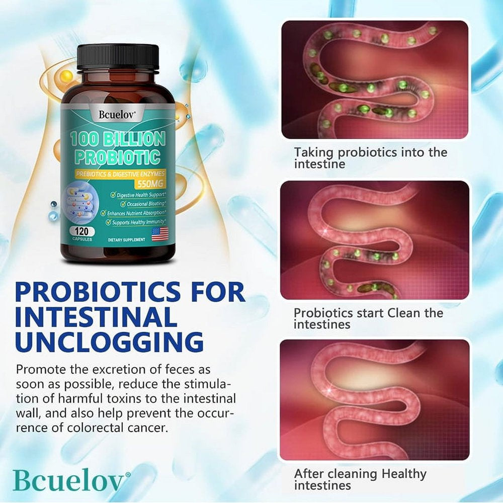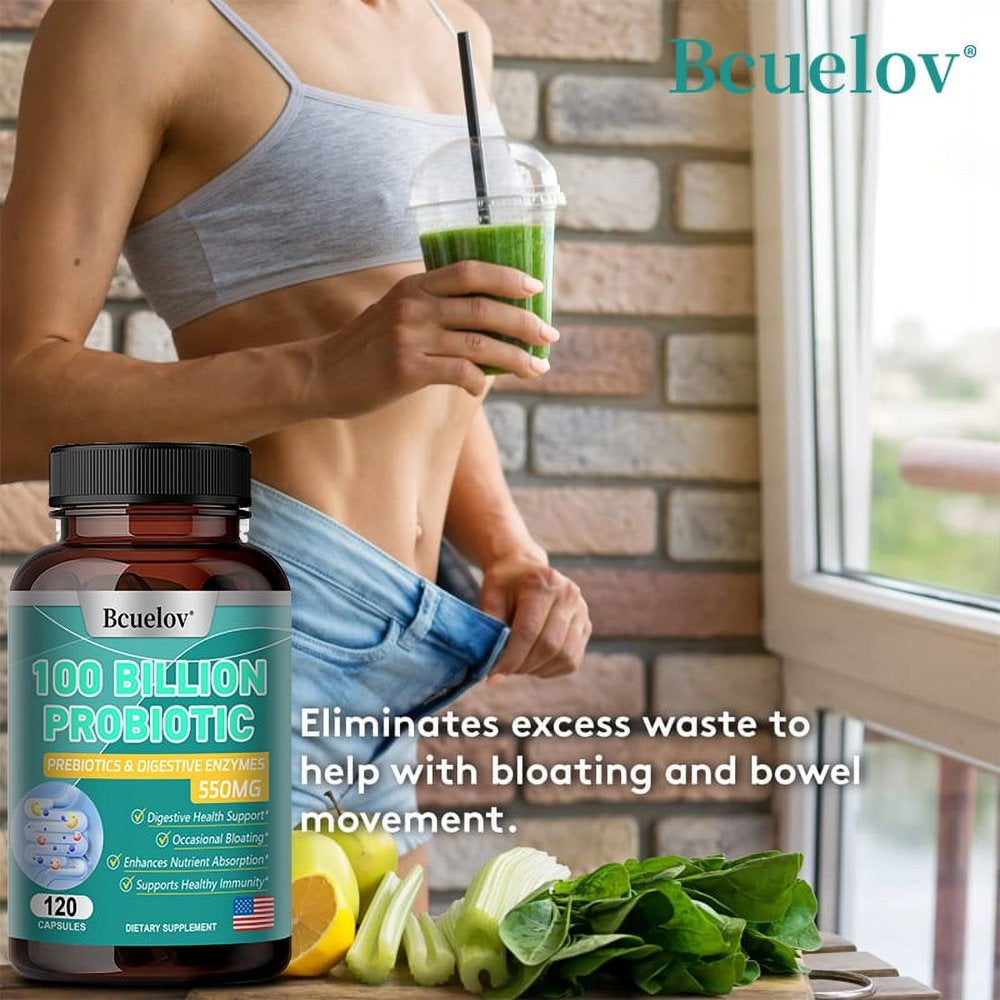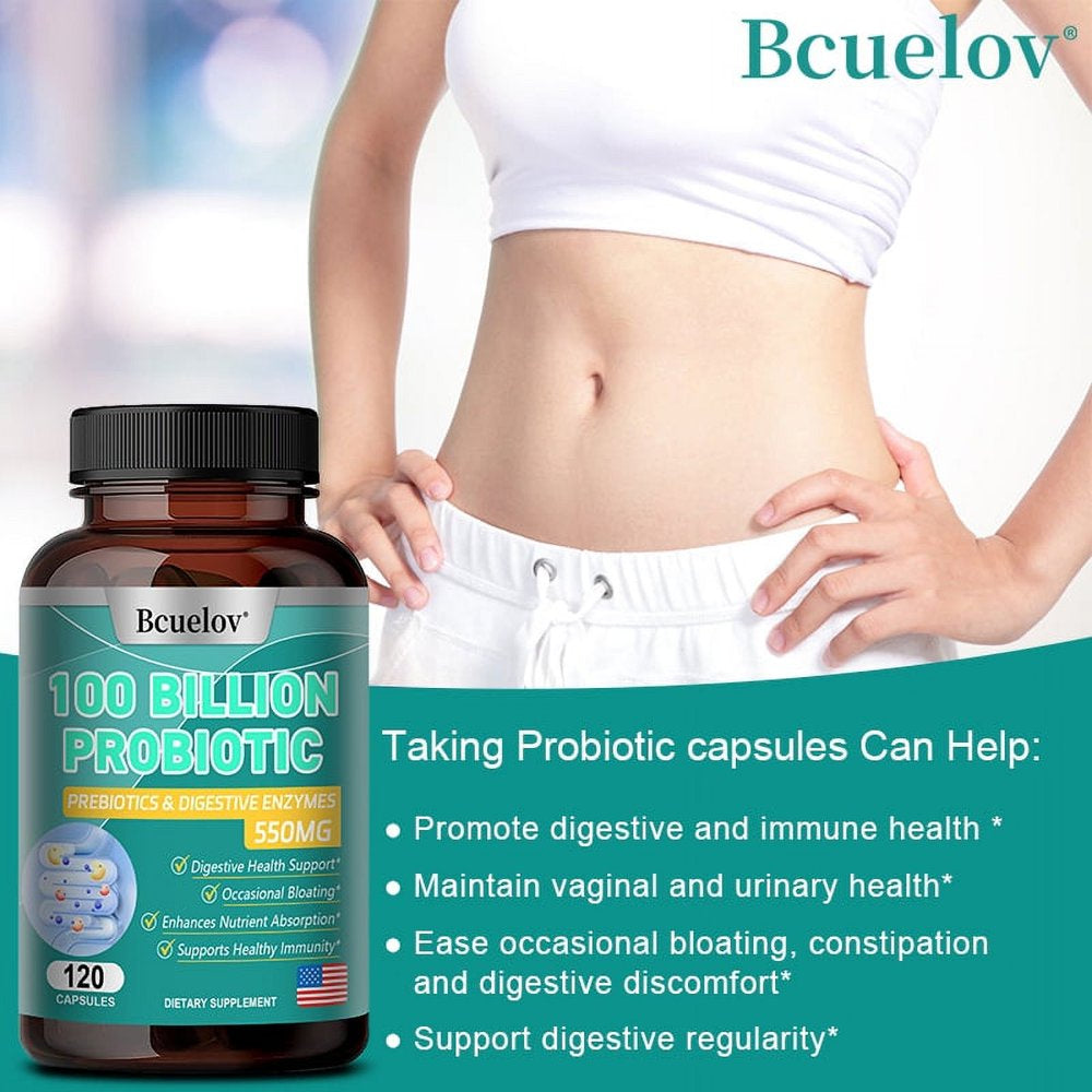 Bcuelov Organic Probiotics 100 Billion, Dr. Formulated Probiotic Capsules for Digestive and Gut Health - Supports Occasional Constipation, Diarrhea, Gas and Bloating