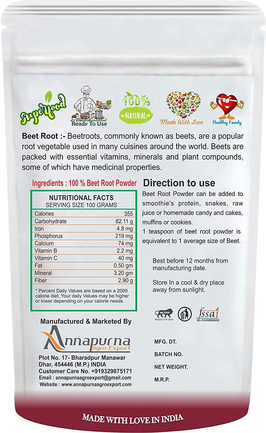 Rich in Nutrients Beetroots contains all those nutrients which are most required. This is rich in vitamins, minerals and fibre. It maintains your energy, even in a hassle-full day. This beetroot powder is loaded with same nutrients. Maintains Your Health This highly nutritious vegetable fulfills various requirements of a human body. It helps in the overall well being of the body naturally. Various Usage It can be used in various ways to bring out the most of it. Add a tea spoon of this mirulaous powder in any of your dish to make it look tempting & delicious at same time.